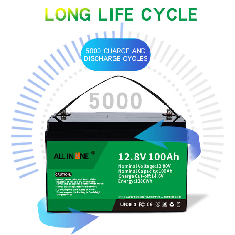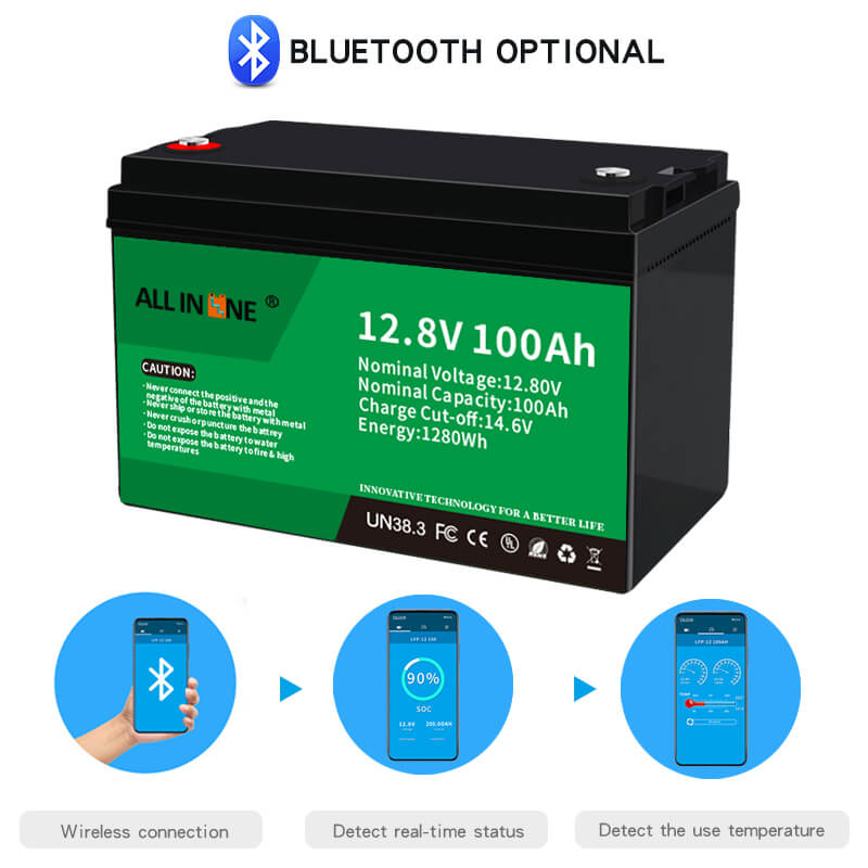 Esta batería LFP de 12,8 V 100 Ah puede ser una sustitución perfecta de la batería AGM / GEL, ALL IN ONE también proporciona baterías personalizadas con diferentes capacidades, dimensiones y funciones de acuerdo con los requisitos específicos del cliente.